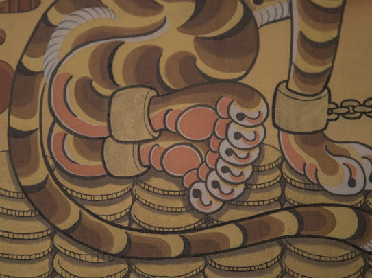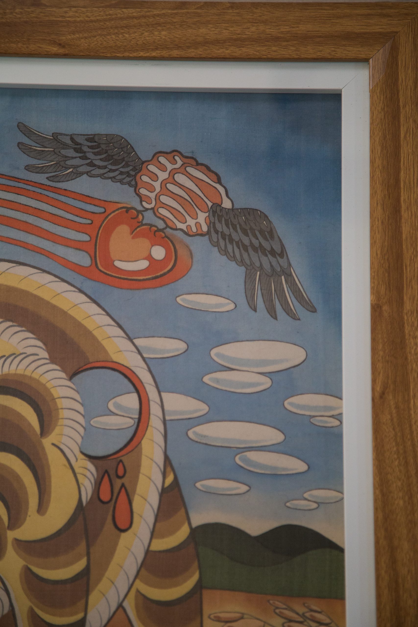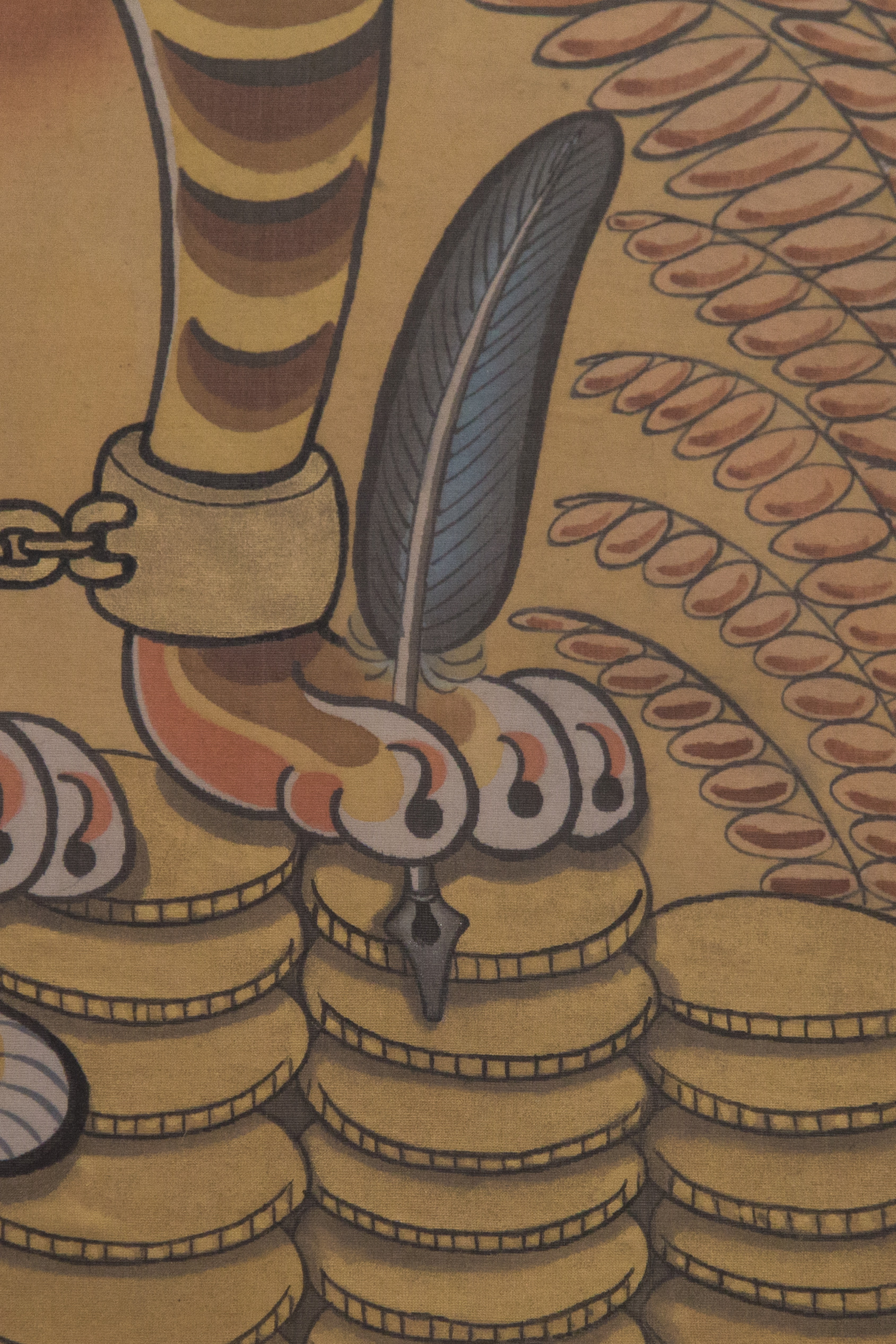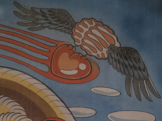 Water color, inks on silk and underneath the silk is glued Do paper.