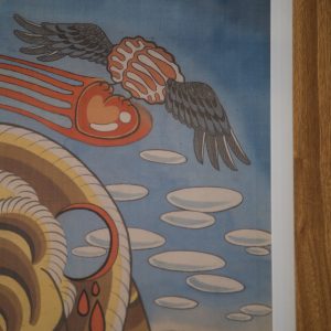 Water color, inks on silk and underneath the silk is glued Do paper