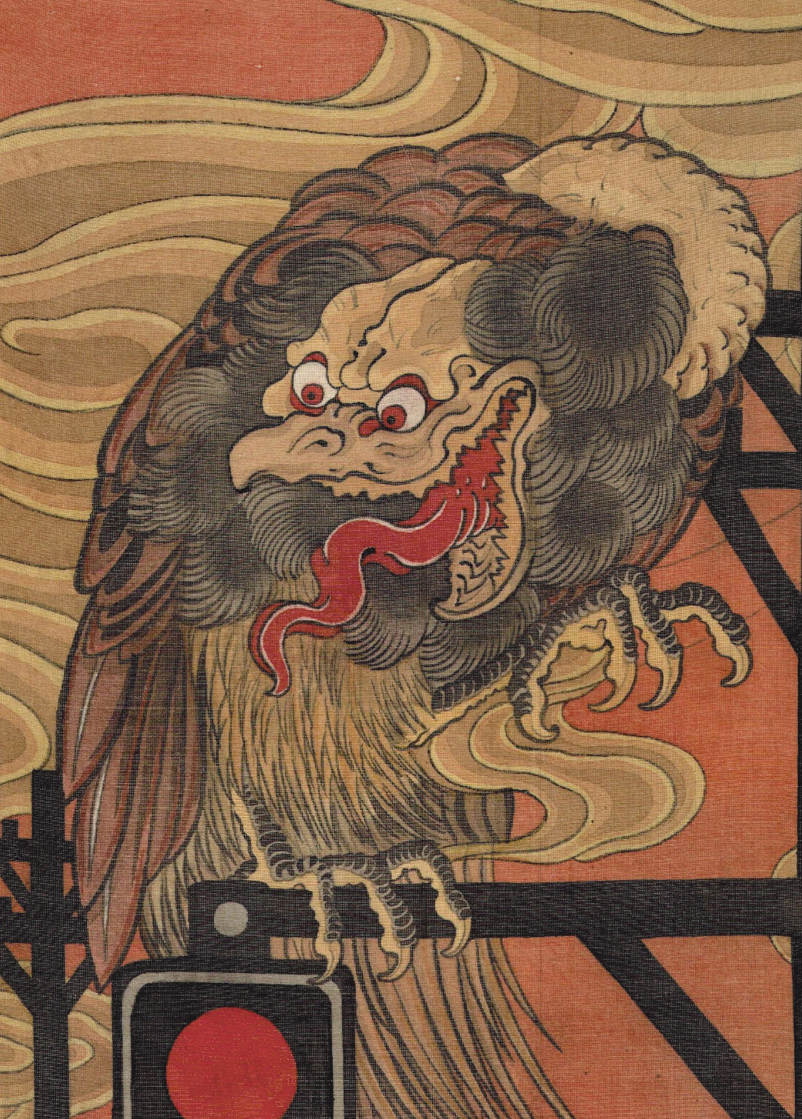 Water color, ink, goldleaf in silk. Paste the Do paper on the underside of the silk.